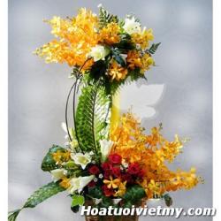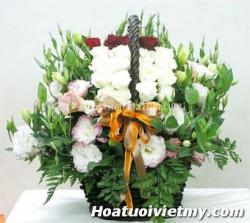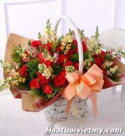 - Lẵng hoa chúc mừng khai trương bằng hoa lan, hoa hồng, hoa cẩm chướng.